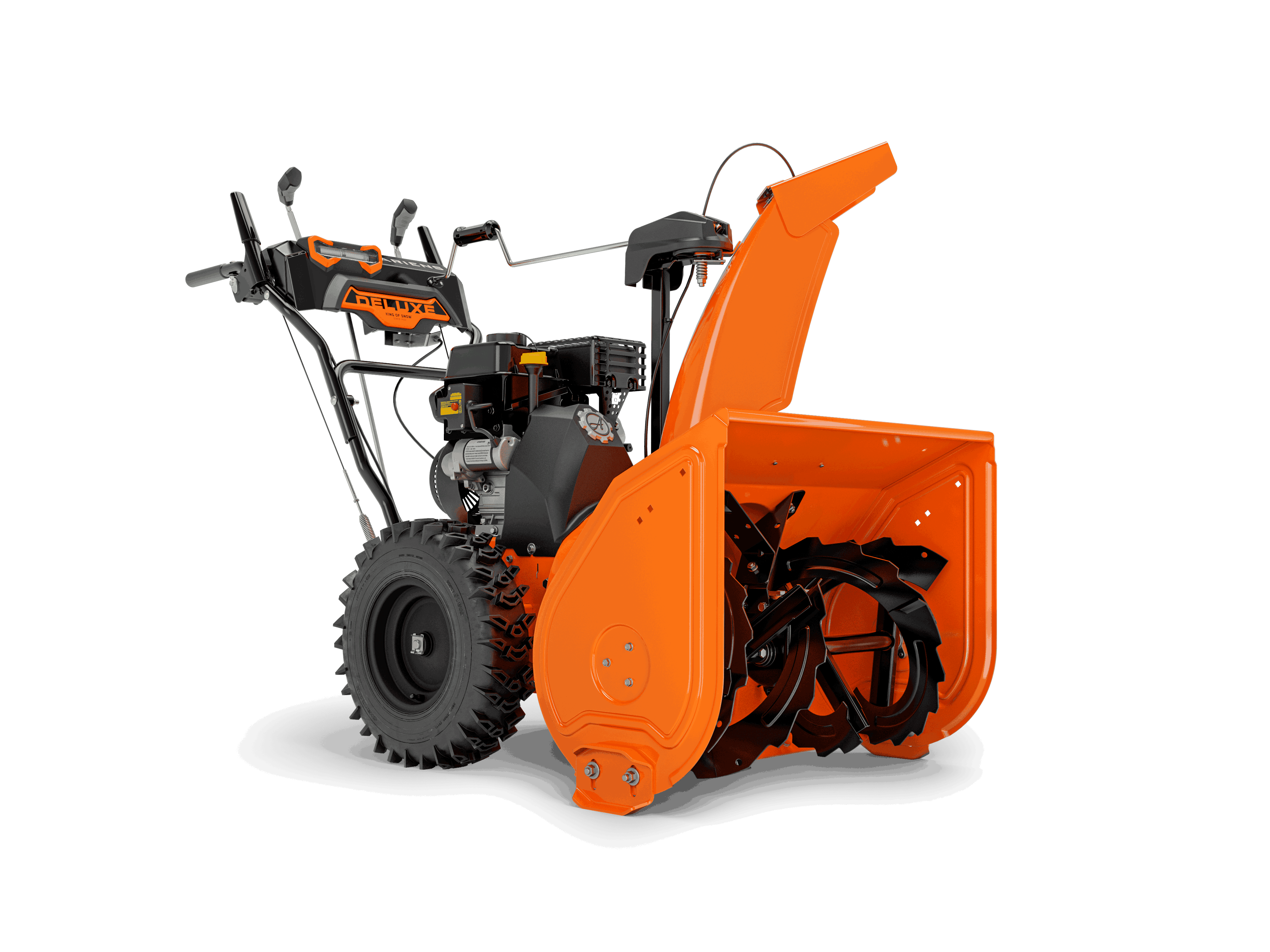 Spesialdesignet ståltut kaster snøen opptil 15,2 meter - med meget god presisjon. Stålutkasteren tåler alt som går gjennom den - våt snø, isbiter og stein - ting som ville rive opp en utkastertut i plast.
